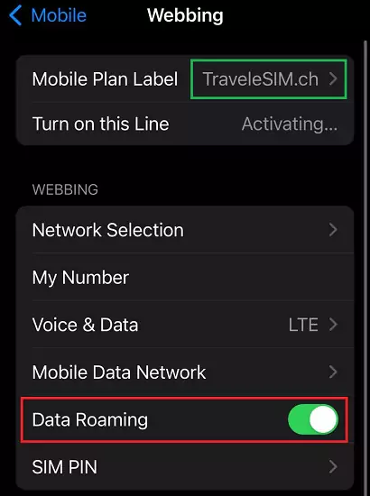 Enable Data Roaming on the eSIM from TraveleSIM.ch