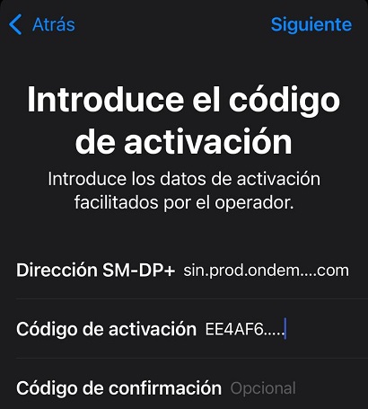 Introduce la ActivationAddress y el ActivationCode del correo electrónico o de Mi Cuenta