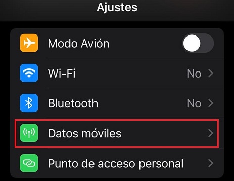 Entra en Ajustes y pulsa en Datos móviles o Datos celulares.