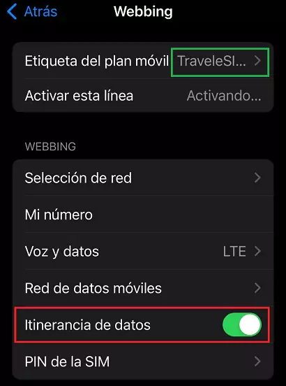 Activar la itinerancia de datos en la eSIM desde TraveleSIM.ch